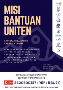 On January 25th 2021, Skuad Media Uniten held a Facebook live ceremony which showcased 40,000 flood victims that were affected in Johor and Pahang, including
