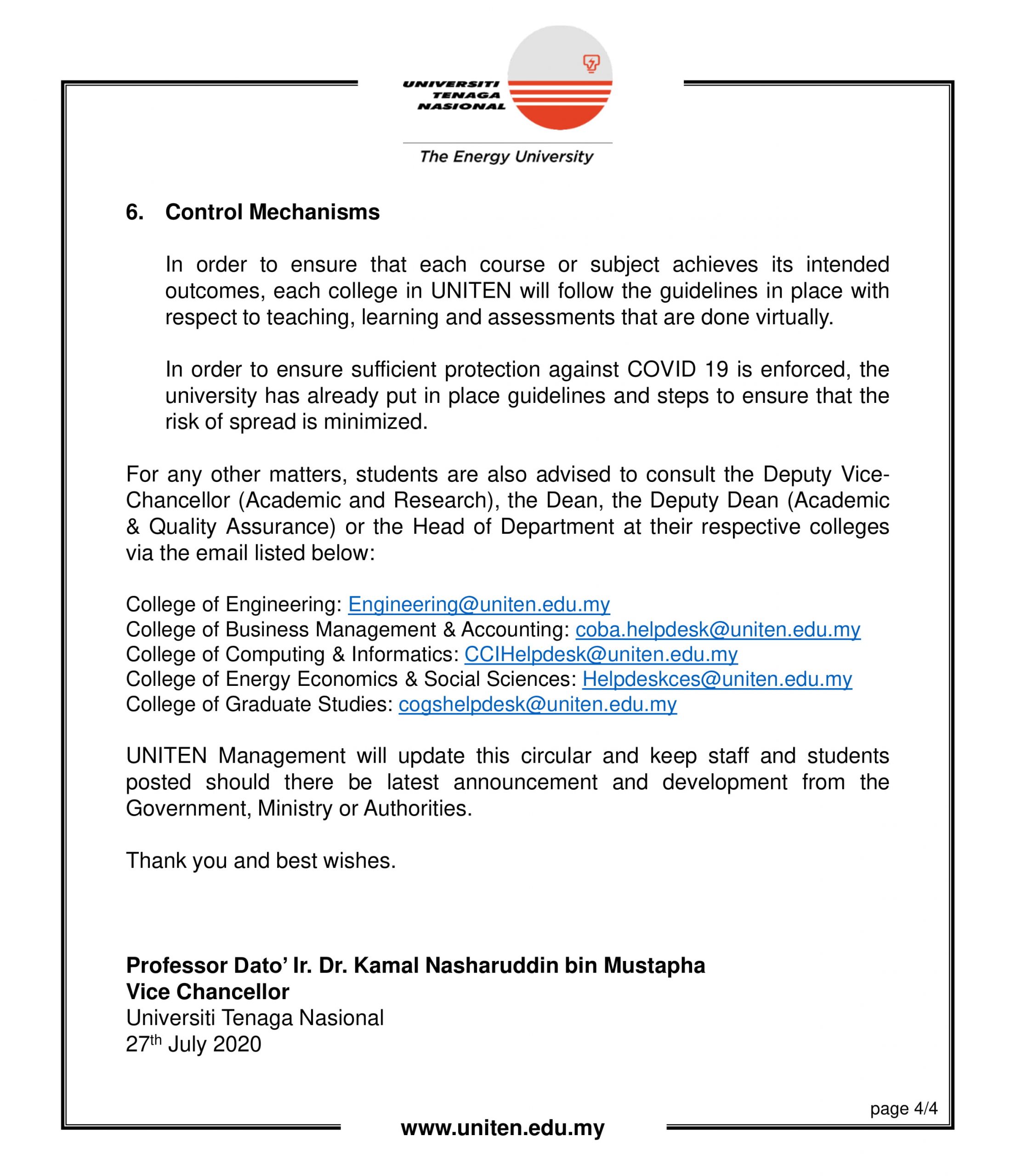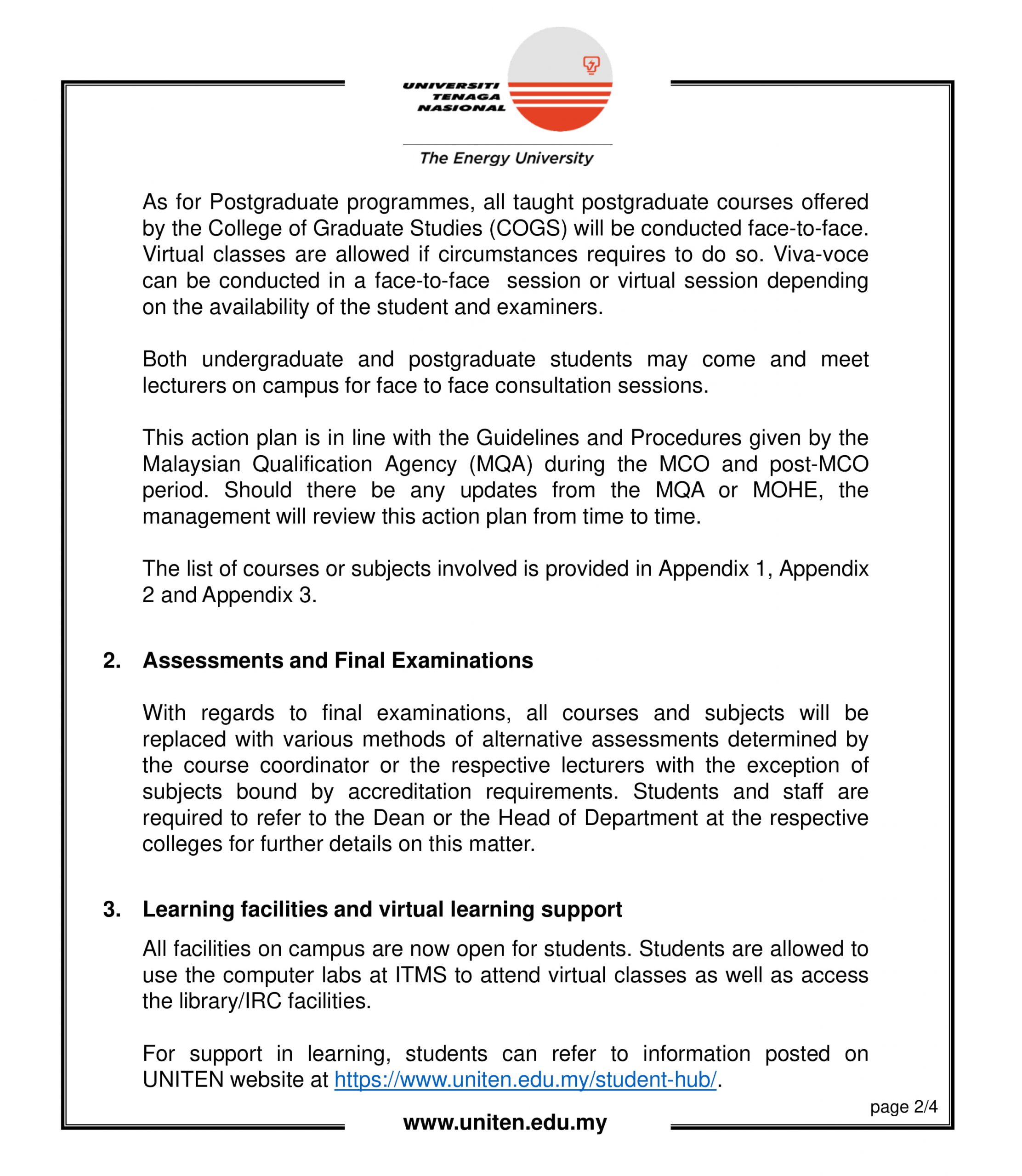 Student Representative Council would like to share some important announcements from the UNITEN management regarding the Teaching and Learning Action Plan for this upcoming semester, which is Semester 1 2020/2021. Please read carefully and understand the details. Please do not hesitate to contact the SRC members for any enquiries.