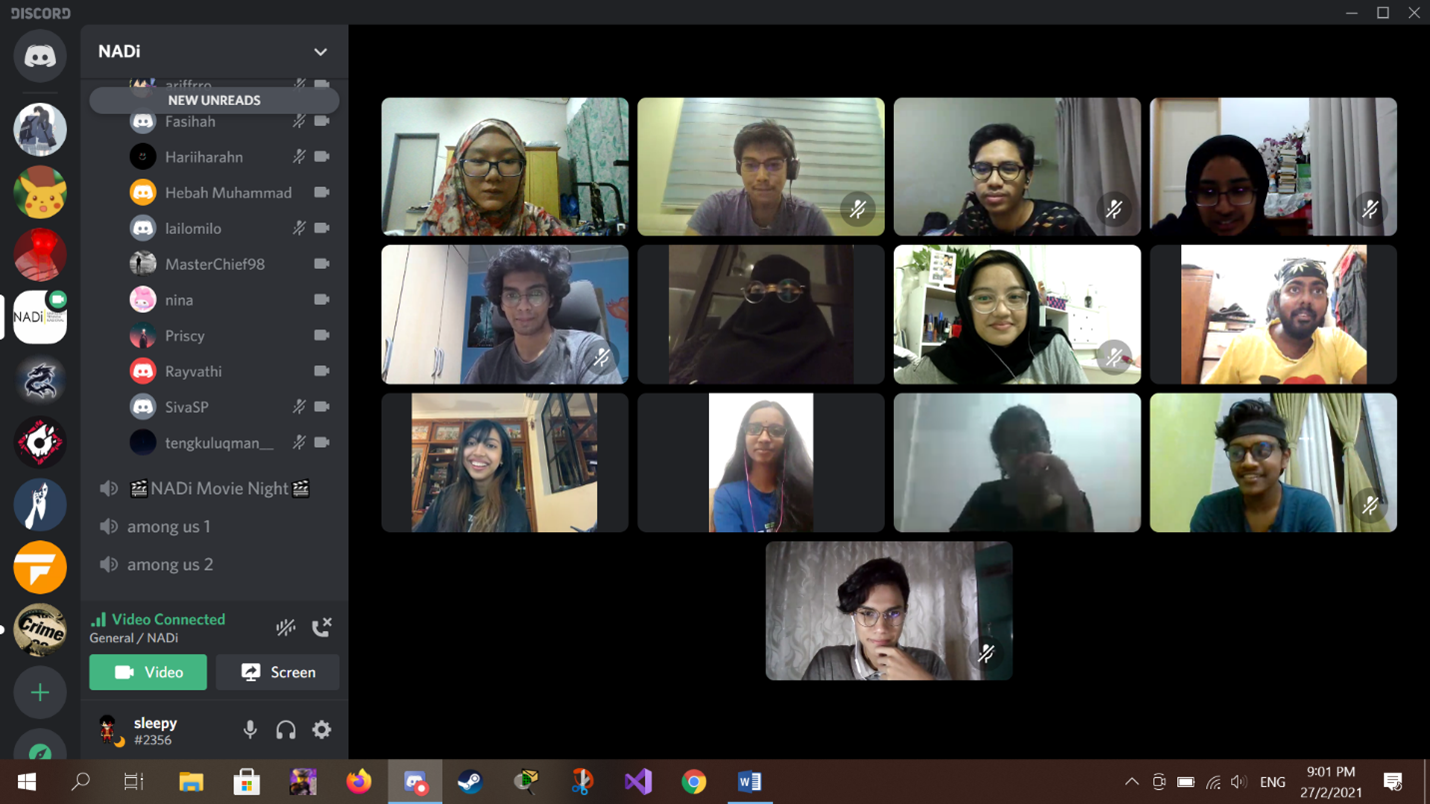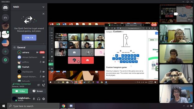 On February 27th 2021 at 8:50pm, NADi held a game night event for its club members. It was held on NADi’s discord server where we can communicate with each other easily. The game was simple, it is similar to the popular online game Among Us where there are imposters and crewmates in a spaceship. The imposter’s job is to sabotage the crewmates’ tasks and prevent them from completing it. On our game night there’s no spaceship however, we have 3 imposters in the discord chat. Each team is paired with 2 people hence we have no clue whether our partner is a crewmate or an imposter. The crewmates goal is to play activities or games to earn points and try to win in first place while the imposters will try to prevent the crewmates earning points and make them end up in the last 3 places.