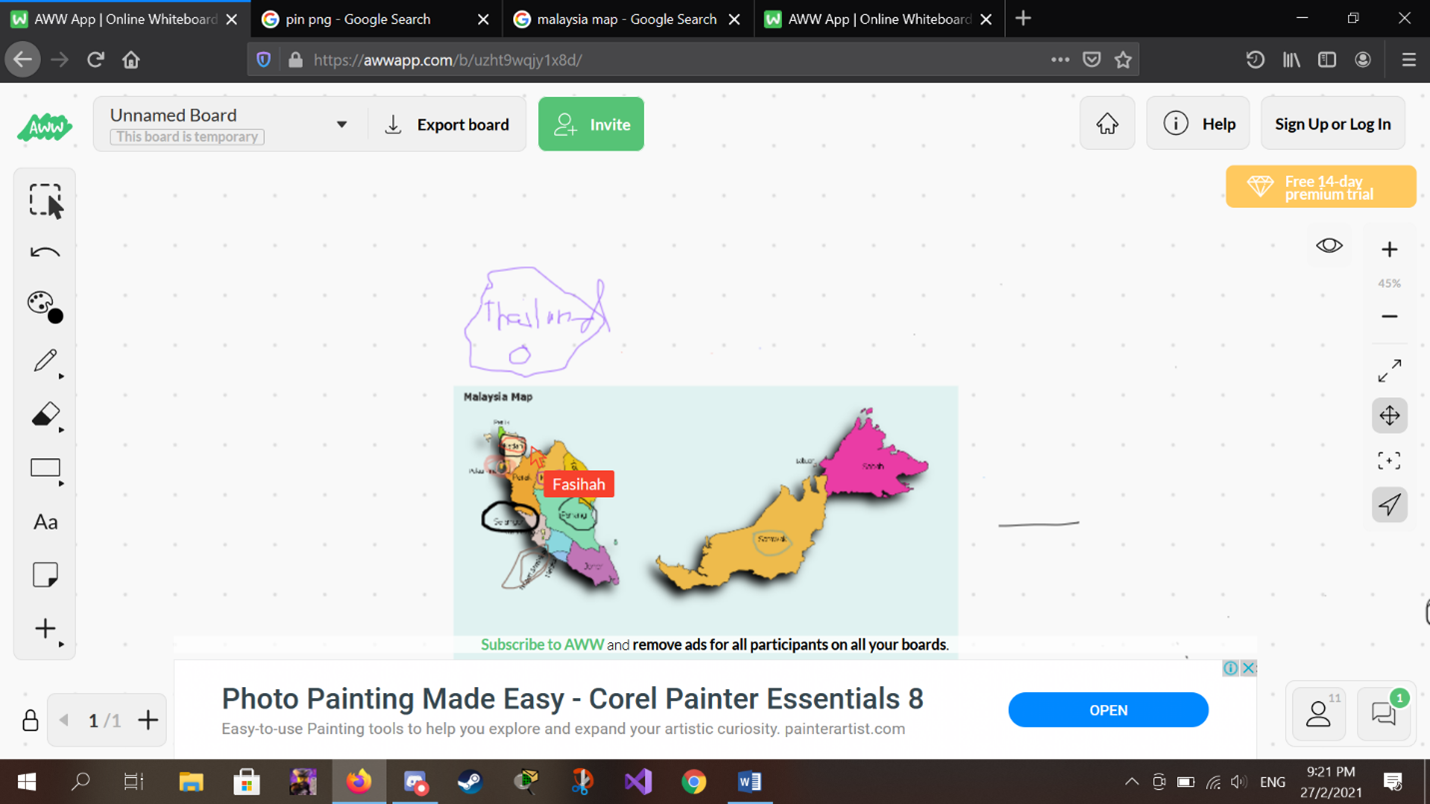 First thing we did was doing some ice breaking activity and getting to know each member in the discord chat. The first activity was to pinpoint our birth place and then tell everyone about ourselves. Once it is done, the game night begins. The first game is the classic hangman game where each team has to guess the words by picking a letter. Each team is cautious on choosing their letter and the imposter will try to deceive their partner from choosing the wrong letter. Some of the words are difficult to guess since they are references from a book or video games. One of the toughest words is a simple bathroom utility, jacuzzi. That word has made all the teams puzzled for a moment until they were given a hint. Another one is a motivational phrase that no one heard in a while and took us some time to figure it out.