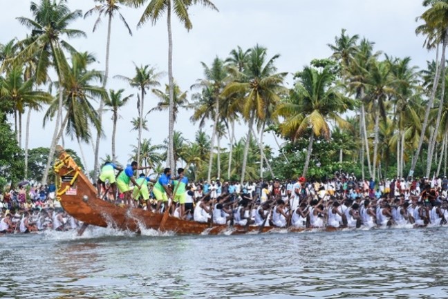 Next, we have Onam. Onam is a major annual event for the Malayali people in Kerala. It is a harvest festival, one of three major Hindu celebrations along with Vishu and Thiruvathira, and it is observed with numerous cultural events. It is also considered as the start of the new year for Malayalis. Onam celebrations include Vallam Kali (boat races), Pulikali (tiger dances), Pookkalam (flower Rangoli), Onathappan (worship), Onam Kali (Tug of War), Thumbi Thullal (women’s dance), Kummattikali (mask dance), Onathallu (martial arts), Onavillu (music), Kazhchakkula (plantain offerings), Onapottan (costumes), Atthachamayam (folk songs and dance), and many other celebrations.